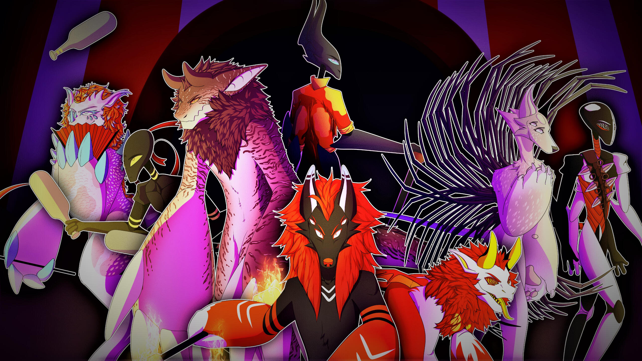 Of the millions of Akaarans forced to flee their homes and rebuild hundreds of feet below their planet’s surface, only eight could say their lives hadn’t changed all that much. After all, to ‘rebuild’ you must have already had and lost something worth keeping. Without that, the process of moving from one place to another was nothing more than a test of how easily you could adapt.If there was one thing the Novelty Circus knew how to do above almost all else, it was adapt.With narrowed eyes and clenched jaws, Freakshow and Parade slowly circled each other. The air hung heavy between them. Despite being the same species, both dreer were as different to each other as the sun was to Akaara’s moons.Freakshow, despite her enormous size, moved with incredible fluidity. Her lumbering form was the perfect balance between brutishly threatening and terrifyingly precise, footsteps heavy with the weight of keeping her tall frame upright but carefully calculated in their positioning. Her long claws emitted a low hsssssss as they furrowed lines in the sandy floor of the circus tent, knuckles almost brushing the ground as she hunched into a more comfortable and defensive gait. A low growl rumbled deep within her chest.In a stark contrast to the larger dreer, Parade moved with the grace of the wind and the cockiness of someone who always got his way. In his right hand he held a fan which he used to obscure the lower half of his face, while his left hand held a stick that guided a long red ribbon through effortless, never-ending arcs around his body. His spine was straight, shoulders pushed back to puff out his chest, and as he walked he seemed to sway back and forth as if caught in an invisible tide – not unlike a dancer waiting for a cue to lapse into their next sequences of elegant moves.Around and around each other they tread, until, with little preamble, Freakshow suddenly halted and lunged in Parade’s direction. She added power to her sprint by thrusting off the ground with her massive hands. Her low growl rose in volume, rhythmically broken by huffs of exertion as she drew closer to her foe.With a flutter of his fan, Parade ceased his pacing and turned to face her. He held his ground, fearlessly staring down the bigger dreer, while around him the ribbon picked up speed.The air began to hum as the fabric cut through it. Parade’s body rocked side to side as he pushed himself to move the ribbon faster and faster.Just as Freakshow crouched lower in her stride, intending to launch herself at Parade, the ribbon – which moments before had seemed to be everywhere, weaving a chaotic sphere of fabric around its wielder – seemed to completely vanish as Parade quickly drew his arm back and snapped it forward and back again with such a tremendous amount of force that—CRACK!Freakshow clumsily skid to a halt as the ribbon ripped through the air mere inches from her muzzle. She scrambled to lurch out of the twirler’s range, massive claws now hindering her attempt to flee.With a satisfied flutter of his fan, Parade raised his head high and smirked. His ribbon began weaving loops around him once more – until, with a grunt of surprise, he himself staggered back when Freakshow gathered her paws beneath her and abruptly changed direction.The ribbon, now only moving at a fraction of the speed it was before, was too slow to stop Freakshow as she ducked through a window in its curve and jumped, ready to bodily tackle Parade to the ground.Reacting fast, Parade leant backwards and let his body drop. He swiftly folded his fan and placed it in his mouth before planting his hand beneath him, keeping his body suspended mere inches above the sand and dirt of the ground below.Freakshow was too late to stop her momentum as she soared over the dreer, through where his torso had just been and close enough that Parade could feel the air tickle his fur in her wake. She skidded to a stop a few feet away when she landed and whipped around to face her foe as his ribbon hit the ground.Using the force of his fall to push himself back upright, Parade gracefully spun to face Freakshow. He flicked the fan from his clenched teeth and snapped it open with a flutter, ribbon once more whirring to life in a buzzing storm of fabric around him.Freakshow hunched, growl returning, and braced to leap a second time. Parade crouched slightly, prepared to again snap his ribbon out at his enemy. But as the twirler began to draw his arm forward and Freakshow snorted, ready to lunge, the flame-engulfed end of a firestick sheared through the air between them and brought both to an abrupt stop.Sideshow stepped forward, eyeing each dreer carefully.They backed off and began circling each other once more. Both pairs of eyes stayed glued to the archae’s figure in the middle as he raised the firestick and let it spin into rhythm with the second burning prop he wielded.The fire dancer spun the sticks in small, fast arcs. The quicker they moved, the more the flames seemed to weave an elaborate tapestry into the very air around him.Parade and Freakshow were mesmerised.The spinner performed like this for a moment, a beautiful display of flexibility and fire. The sticks twirled, faster and faster.Just as it didn’t seem like they could pick up any more speed, Sideshow extended the right stick behind him, brought the left up to his face, and breathed out a roaring arc of fire as he pirouetted in a neat circle.Parade and Freakshow stumbled away from the flames and fell to the ground, heads tilted away in deference.When his pirouette was complete and the flames sputtered out, Sideshow straightened.He raised his head and puffed out his chest, shoulders angled back, chest heaving. He splayed the firesticks to the sides of his body, and after a few seconds of holding the pose the archae stooped into a low bow, panting hard.There was complete stillness inside the circus tent for a moment. Everything around the three had faded into the background, th